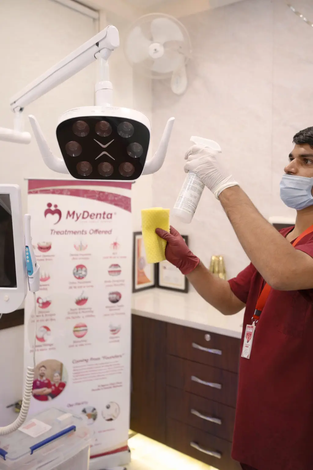 A strict cleaning protocol executed after every patient to maintain aseptic conditions.